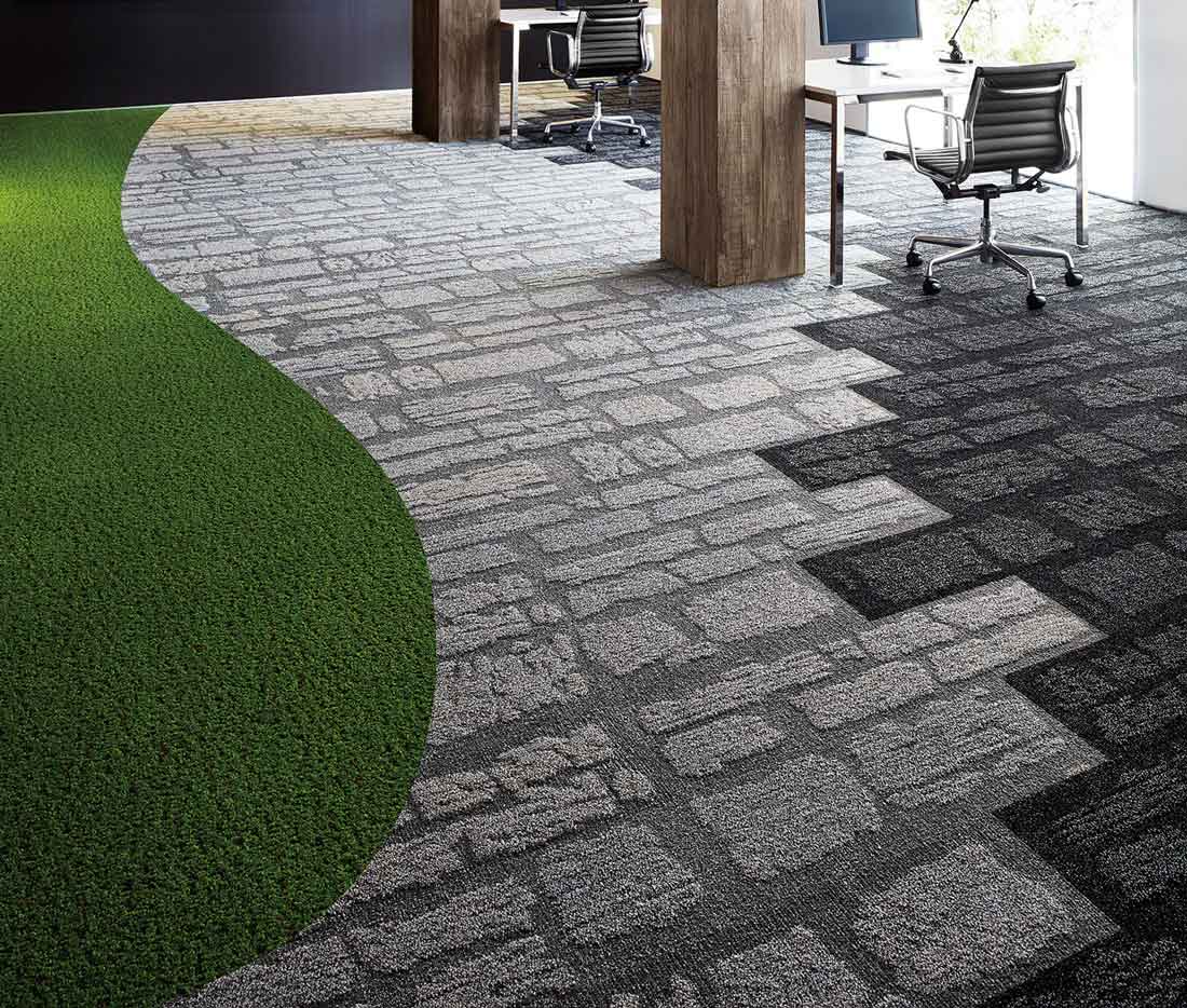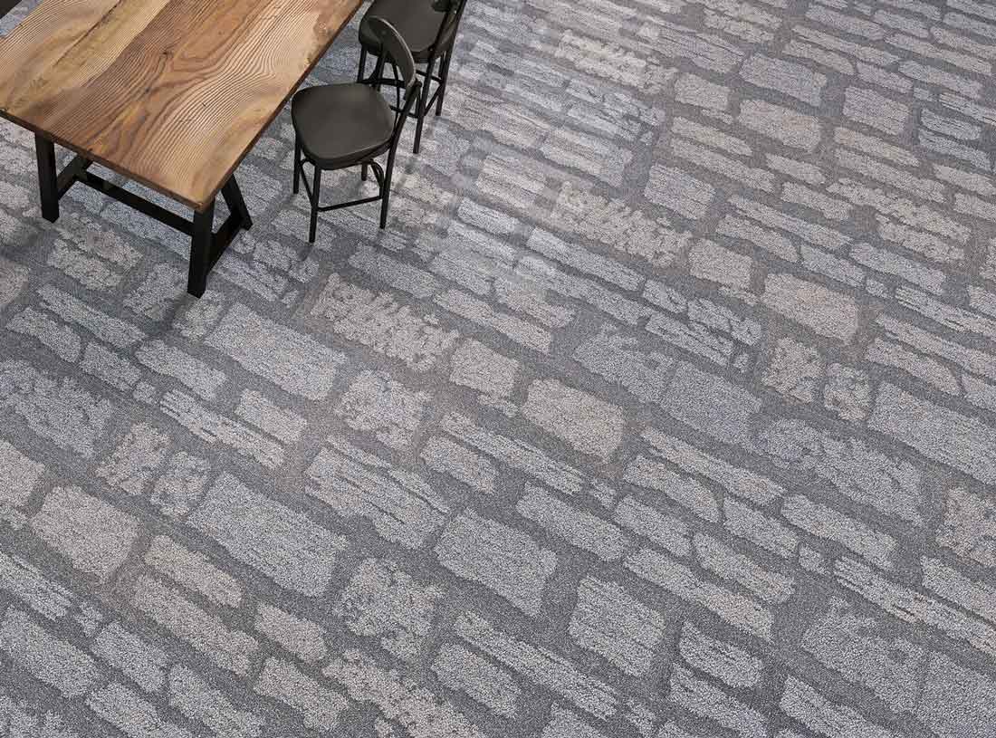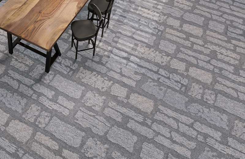 石畳を想起させる立体的で不規則な石の連なりは、大胆で広がりがあるフロアデザインを可能にします。