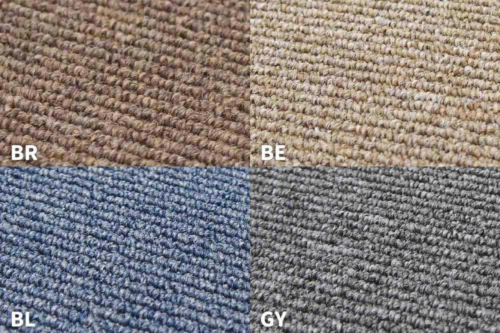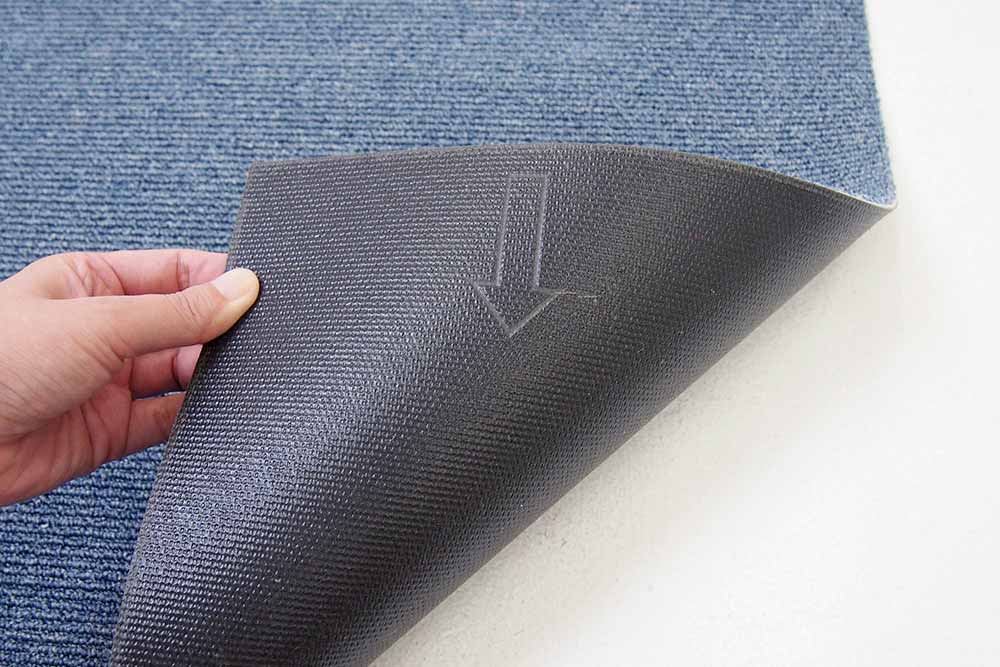 50cm × 50cm 約7mm厚 表面:ポリプロピレン100% ループパイル 裏面:PVC |