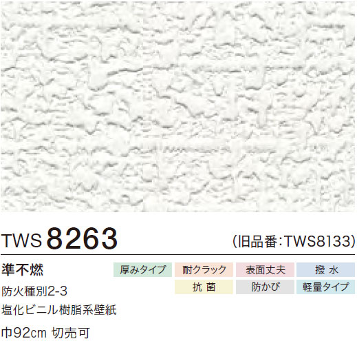 規格は上記 カラー品番を参照ください。 塩化ビニル樹脂系壁紙 SV規格 適合品 JIS規格適合品(壁紙JISA 6921 2014) F☆☆☆☆ シックハウス対策仕様 |