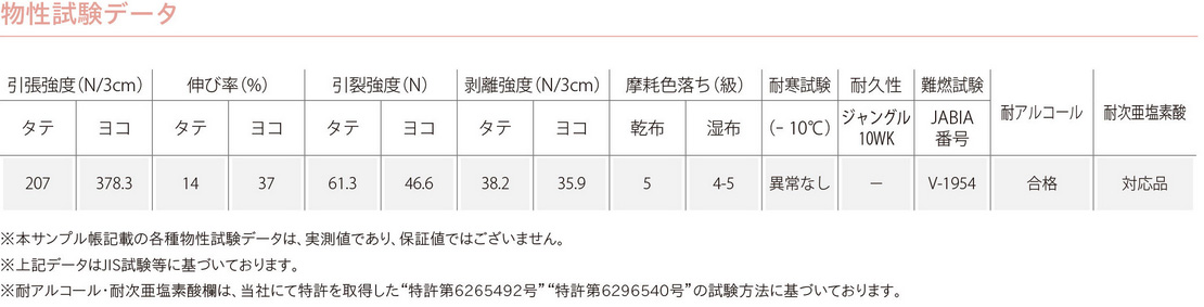 ※ その他のイメージ、コーディネート例、物性試験データ、機能性などについては、ページ下部にてご案内しております。