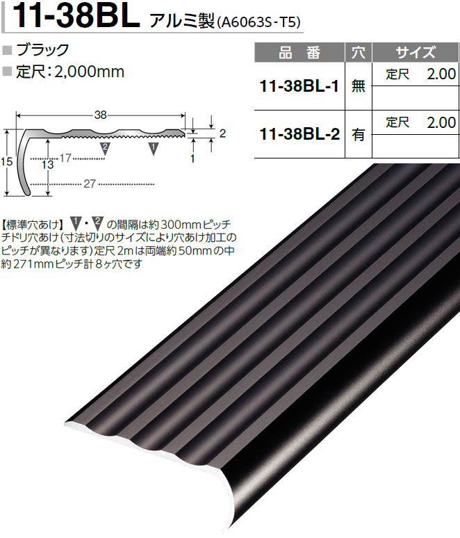 ※ 穴あけ(皿穴)はビスサイズより多少大きいため、アルミ素材の色がみえます。