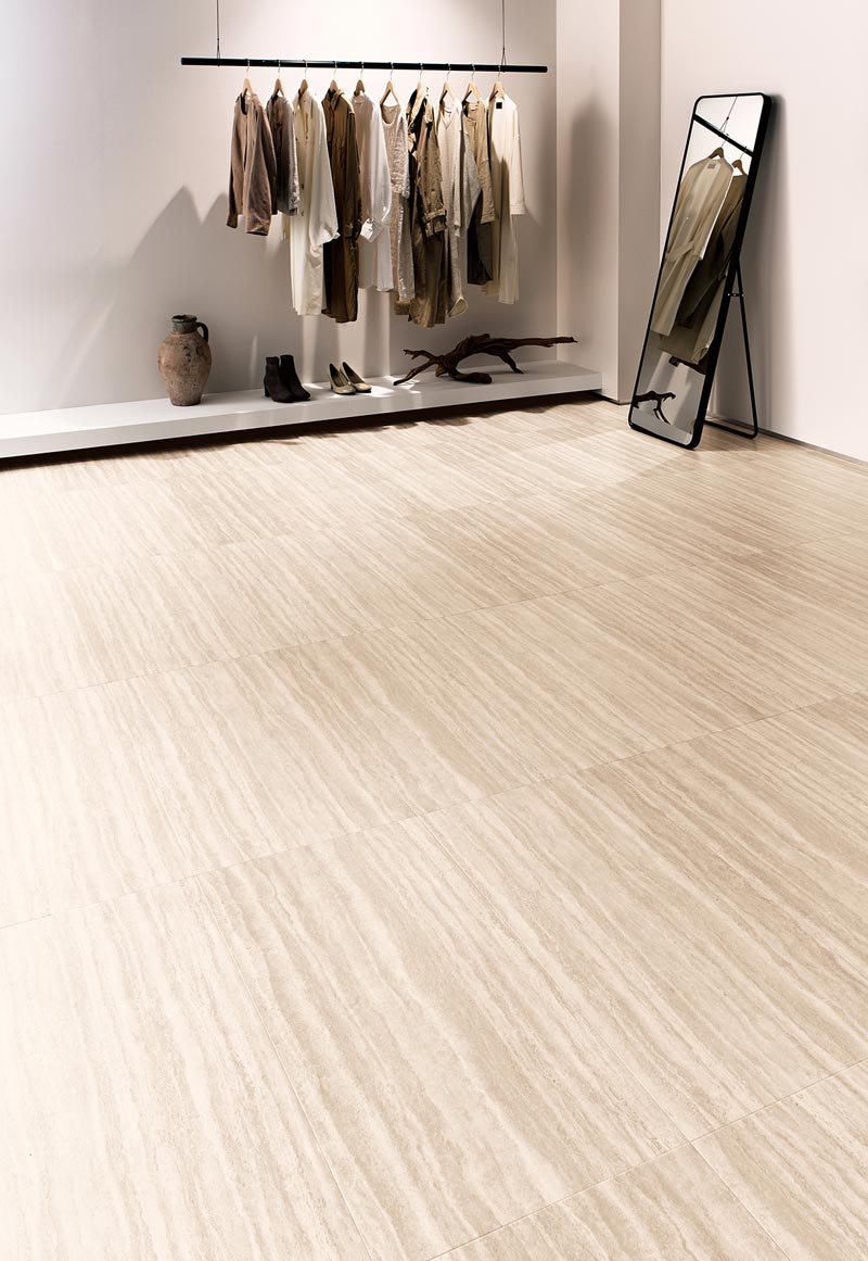 ※ タイル間での柄合わせはできません。 ● 若干寸法にバラツキがあります。施工の際には、ご注意ください。 ● タイル一枚一枚の色柄に変化と濃淡があります。この不均一感が、仕上がったフロアにより一層の自然感をもたらします。 メンテナンス ● 施工後、養生期間をおいてから洗浄剤でポリッシャー洗浄し、よくすすいだ後に樹脂ワックス(ニューFBワックス・Uワックス・ツヤノンワックス(抗菌))を塗布してください。 ● 特に初期メンテナンスでは、タイル表面を充分に洗浄した後ワックスを塗布してください。 ● 状況に応じて、固く絞ったモップでの水拭きによる1日の清掃回数を増やすなど、日常のメンテナンスにご留意ください。 |
