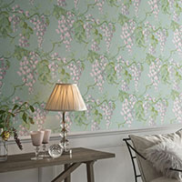 複雑に印刷版を重ねて作られたフラワー柄のビニル壁紙です。
