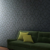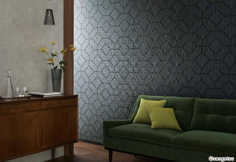 製法にこだわり、モダンで高級感あるテクスチャーを持つ幾何学柄のビニル壁紙です。