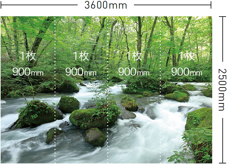 柄寸法:3600mm × 2500mm 割付(W)mm / 枚:900mm / 4枚セット ベース壁紙:サンド調 防かび 防火種別 1-4 不燃 |