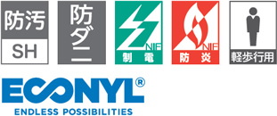 サイズ : 50cm × 50cm 組成 : リサイクル原着ナイロン100% バッキング : P.V.C+ガラスメッシュ+吸着フェルト パイル長 : 3.5mm(総厚 7.0mm) パイル形状 : レベルループパイル パイル密度 : 1/10G ケース梱包時 : 16枚入/ケース(19.6kg) 原産国 : 日本 VOC性能 : F☆☆☆☆ 防炎性 : E 2130312 制電性 : 2.0kV以下(JIS L 4406 23℃ 25%RH 合成底)