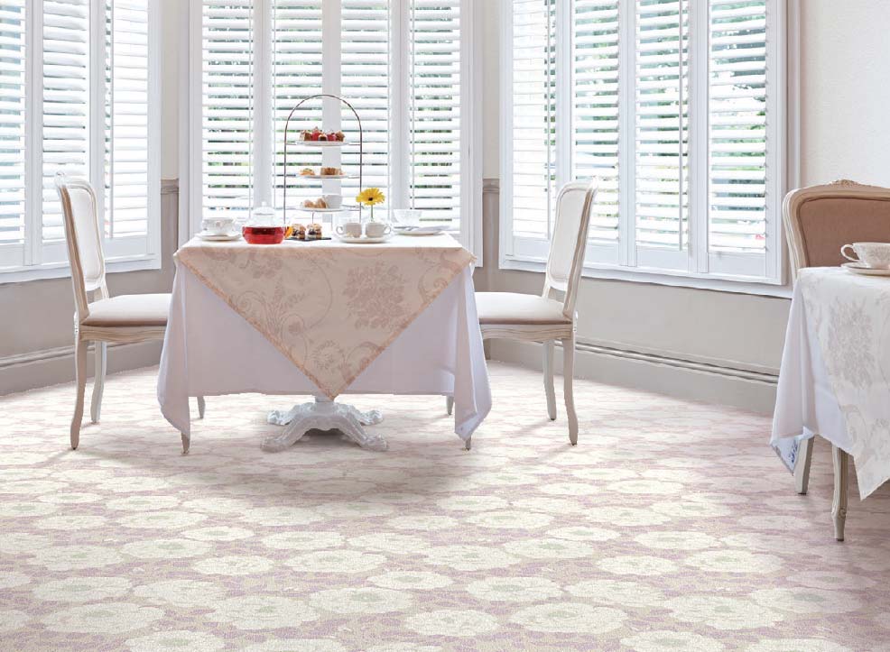 ローラ アシュレイは、ロンドンで始まった英国のブランドです。ローラ アシュレイのもつ優美な色やデザインを、シンコールがタイルカーペットとして商品化しました。