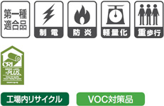 防炎性能試験番号 ET950226 帯電性:1.0kV以下(23℃ 25%RH合成底靴 / JIS L 4406) 耐光堅ろう度:4級(JIS L 4406) 摩擦堅ろう度 (乾):4級(JIS L 4406) F☆☆☆☆ 認定番号 J04-30198 |