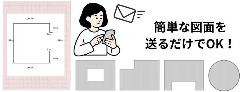 お部屋の形をメモして、サイズを書いた簡単な手書き図面でご注文可能です。