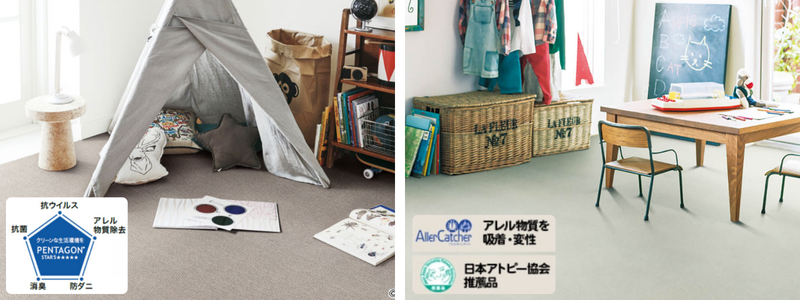 ぜんそくやアトピーなどのアレルギーなどのお悩みをお持ちの方には抗アレル・抗ウイルスのカーペットがオススメです。