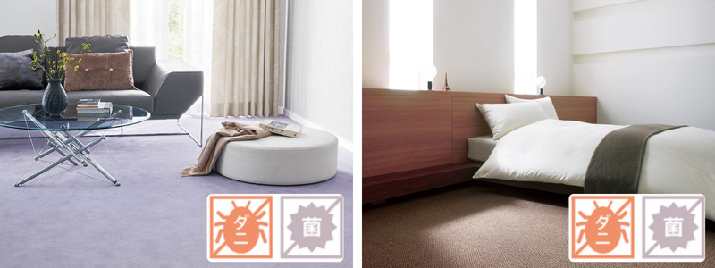 抗菌・防ダニ加工のあるカーペットもたくさんあるので心配無用です!