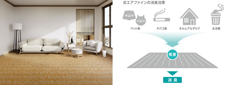 ペットのにおいやタバコの臭いが気になる方には消臭機能付きカーペット。