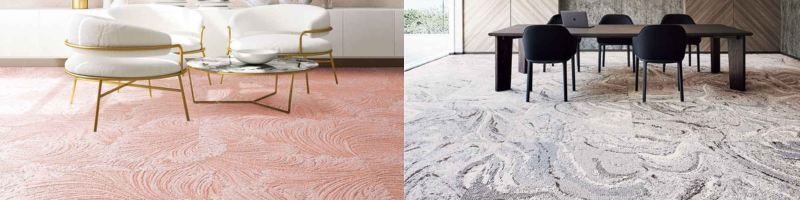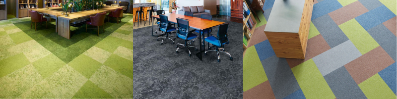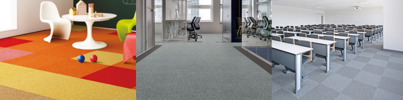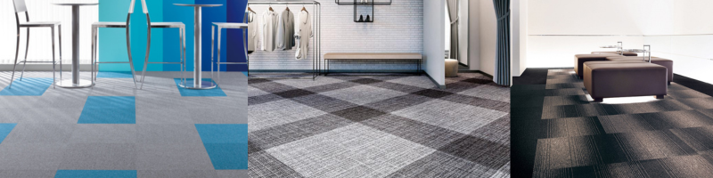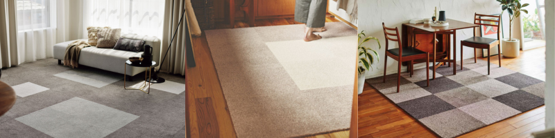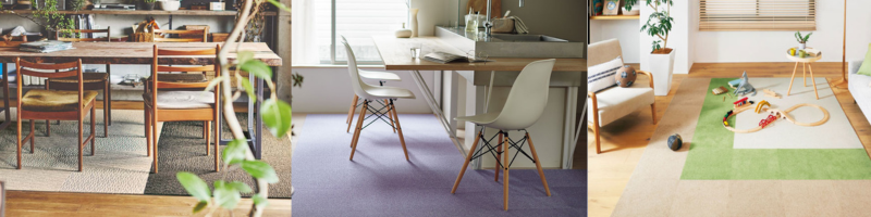今タイルカーペットを使っている場所の張り替えでは、長方形や1m角のサイズで雰囲気をガラッと変えるのもお勧めです。