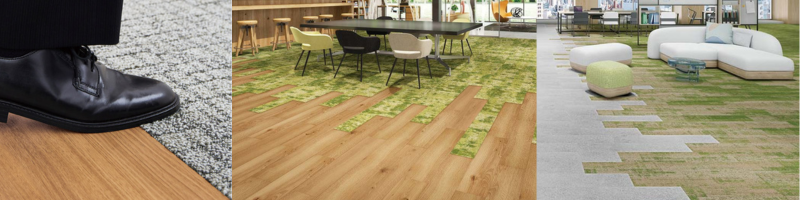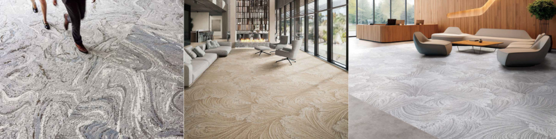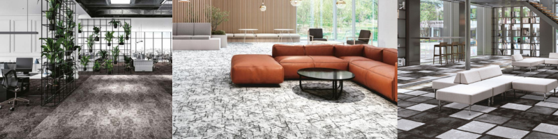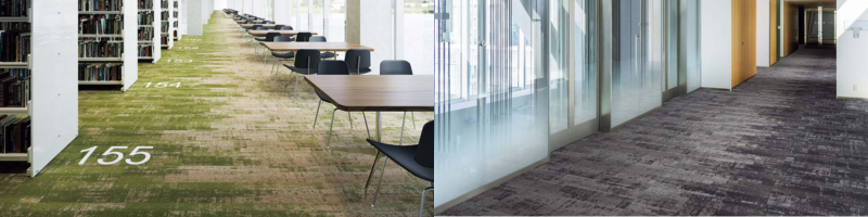 長年タイルカーペットが使われるオフィスやホテル、店舗などでは、同じサイズであればメーカーやシリーズが違っても貼り変えや模様変えがしやすいです。