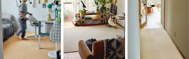 お部屋のサイズにピッタリ合わせてもいいし、使いたいところだけに敷くのもアリ。
