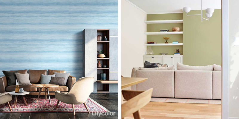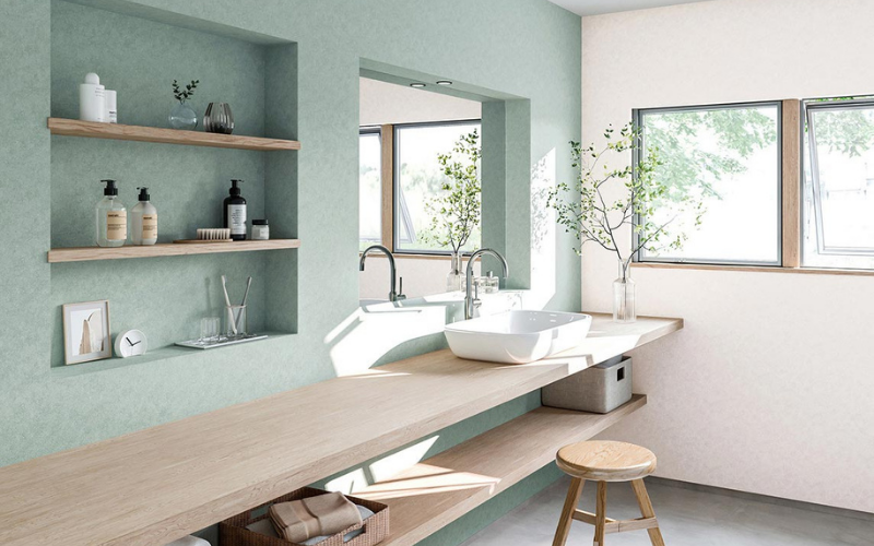 グリーンやブルー系など、落ち着いた色味やリラックスできる色の壁紙がよく選ばれます。