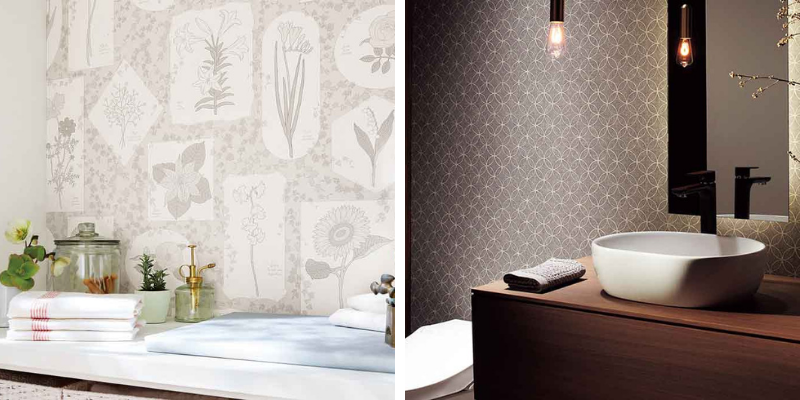 お手洗いは貼る場所も2~3平米ほどなので柄物にも挑戦しやすい場所です。