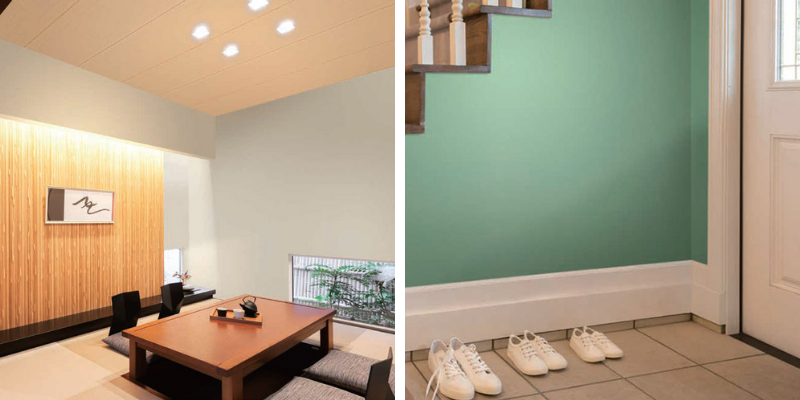 柱回りやポイントとなる壁の一部に使うのがオススメです。