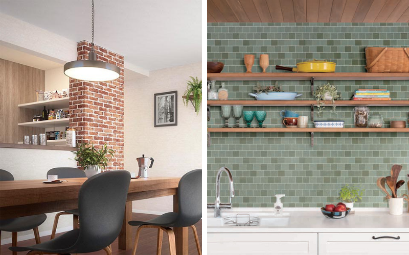 レンガ柄やタイル柄の壁紙はキッチンや洗面エリアに選ばれる方が多いです。
