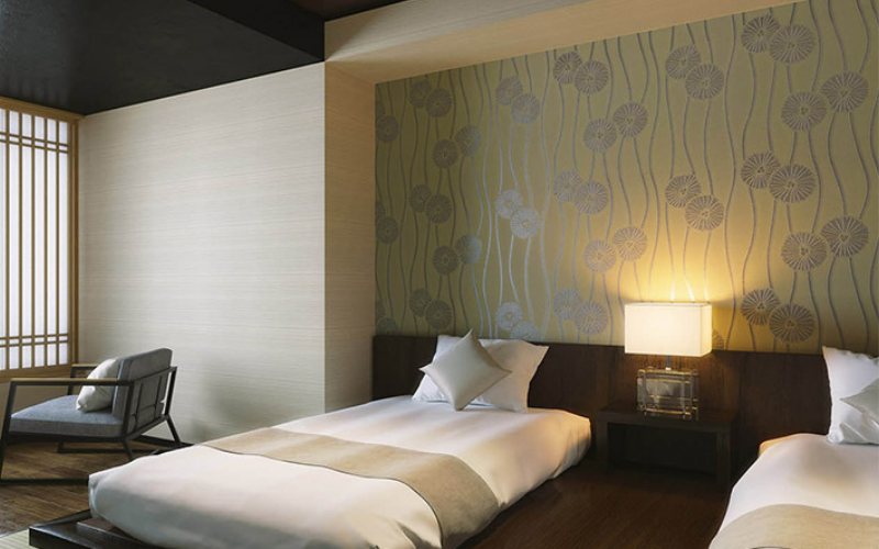 黒系のアクセントクロスを使用すると和モダン風に、菊や松など柄物を入れると旅館のようなオシャレなお部屋になります。