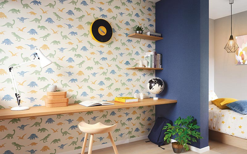 子供部屋には淡いブルー、イエロー、北欧柄の壁紙が人気。