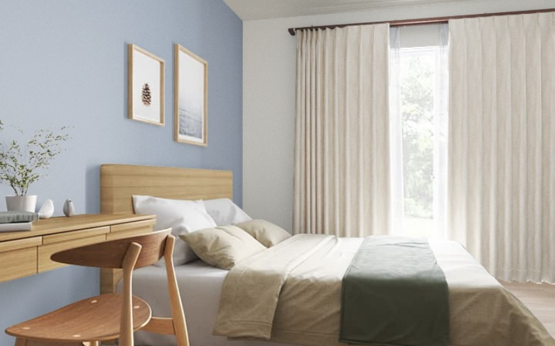 たとえばリビングの一面だけをグレーの壁紙にしたり、寝室に落ち着いたブルーのクロスを入れたり。