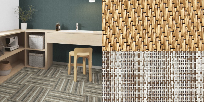 定番の大理石調や木目に加え、最近ではござに近い日本風デザインなど、個性のあるフロアタイルも登場しています。