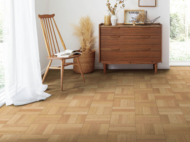 学校の教室の床みたいなデザインのパーケット柄です。