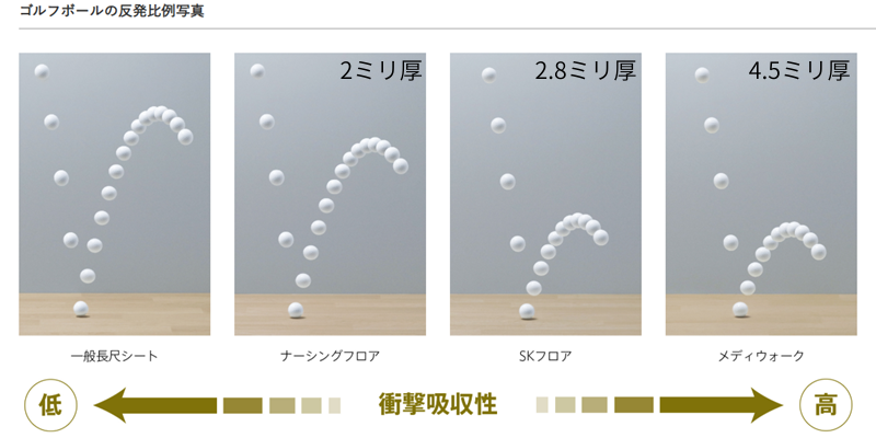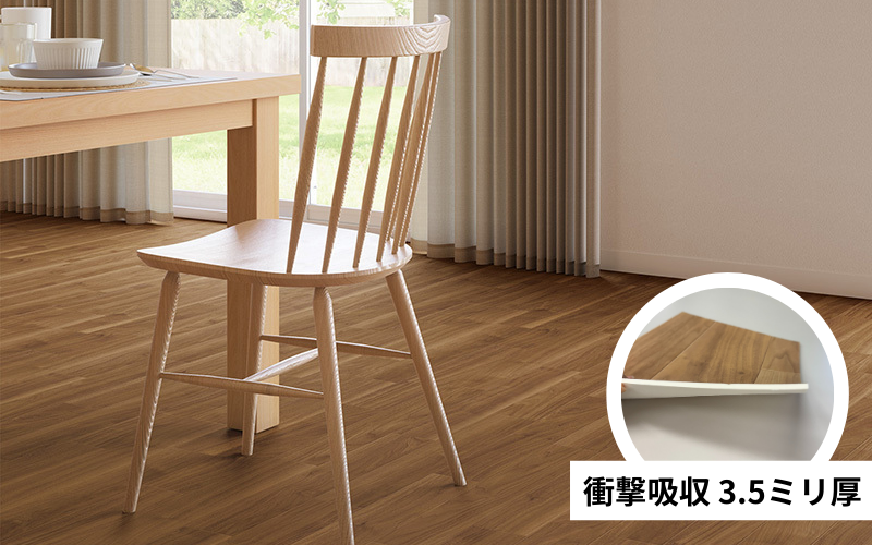 一般的な住宅用のクッションフロアは1.8ミリ厚ですが、衝撃吸収性のあるクッションフロアは3.5ミリ厚もあり、衝撃吸収性に優れています。