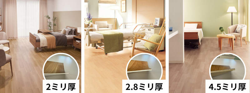 介護施設でも使われる長尺シート(2mm厚 / 2.8mm厚 / 4.5mm厚)
