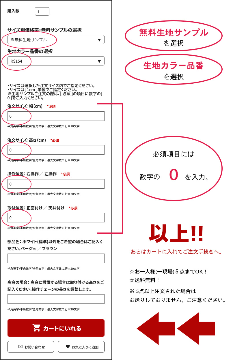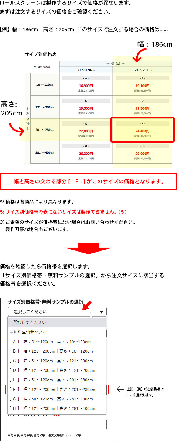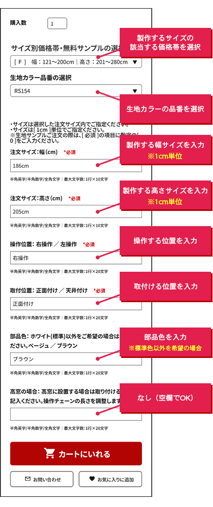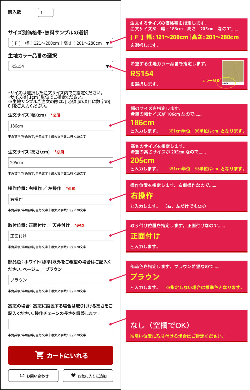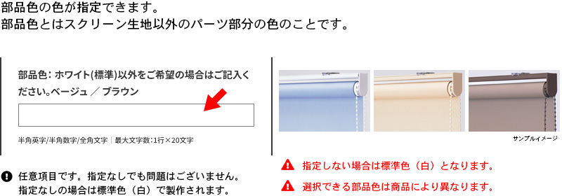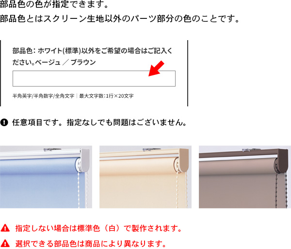 サイズ違いや色違いのロールスクリーンを注文する場合は、それぞれ注文する必要があります。同じようにサイズや色を指定してご注文ください。