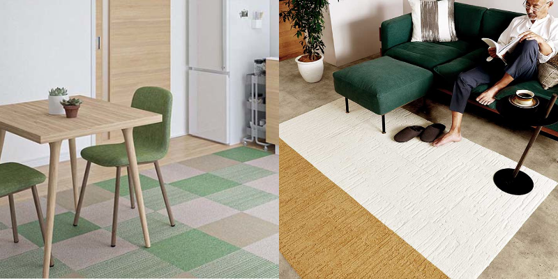 吸着タイルカーペットは配置によって見た目をカスタムできるので、スタッフ一押し商品です。