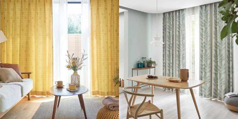床や壁がシンプルな場合、北欧スタイルの柄カーテンを取り入れると雰囲気が明るくなります。