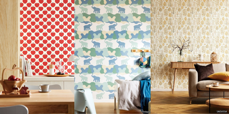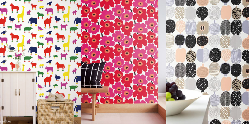 有名なケシの花をモチーフとしたウニッコなど、日本でも根強いファンがいるマリメッコの壁紙はまさに北欧らしいデザイン!