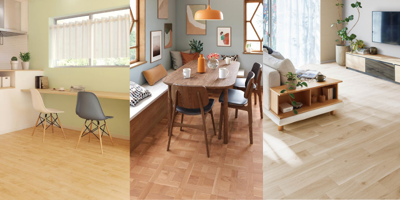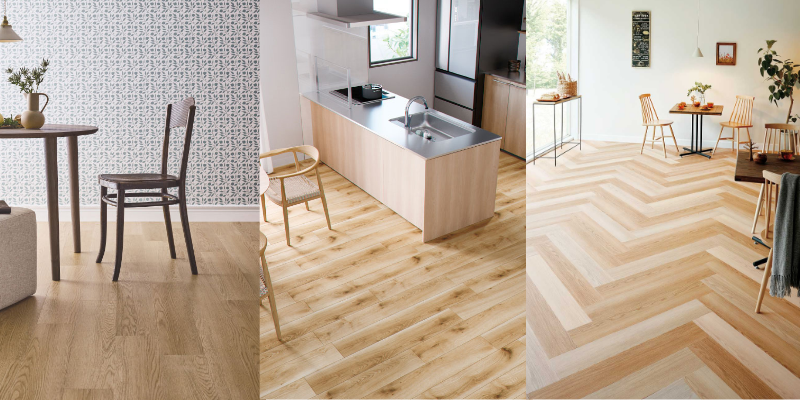 フロアタイルは柄の種類が多く、リアルな質感や柄が特徴です。