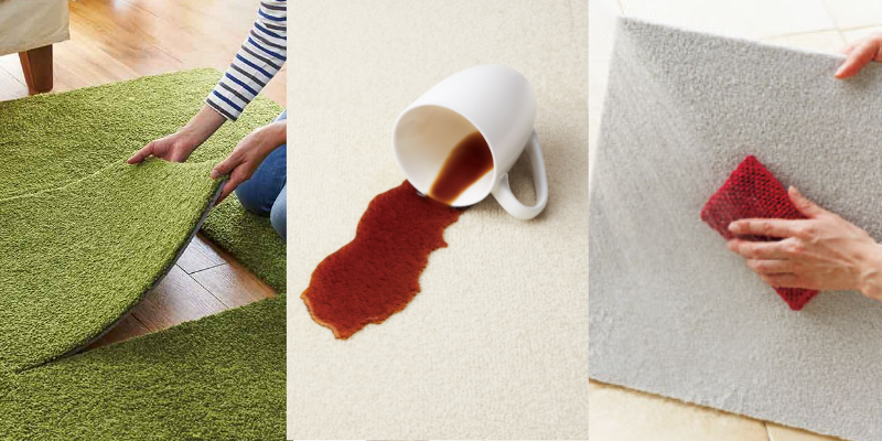 汚れが付きにくいように特殊なコーティングがされていますが、おしっこや吐き戻しがあっても、汚れたタイルカーペットを1枚だけ外して手洗いできるので「一度汚れたら終わり」ではなく、長い間繰り返し使えます。