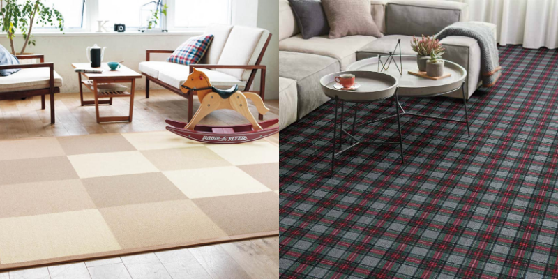 タイルカーペットの有名メーカーのひとつ、サンゲツの洗えるタイルカーペットにはおしゃれなチェック柄があります。