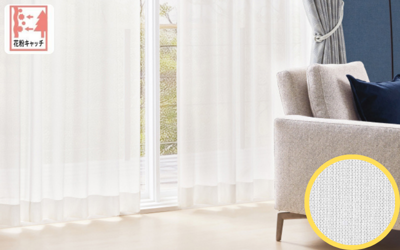 花粉キャッチのレースカーテンはお部屋への花粉の侵入を抑えてくれるので、花粉の季節も気にすることなく窓を開けれます。