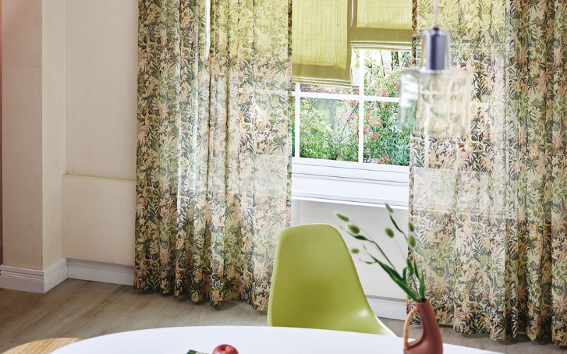 色やデザインのバリエーションも多く、シンプルなドレープカーテンと合わせて、フロントに持ってくるのもオススメです。