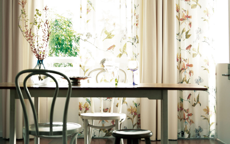 ボイルレースカーテンは細い糸を使用することによって、透け感や柔らかい手触りを楽しむことができます。