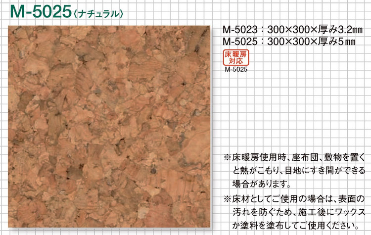 ※床材としてご使用の場合は、表面の汚れを防ぐため、施工後にワックスを塗布してご使用ください。