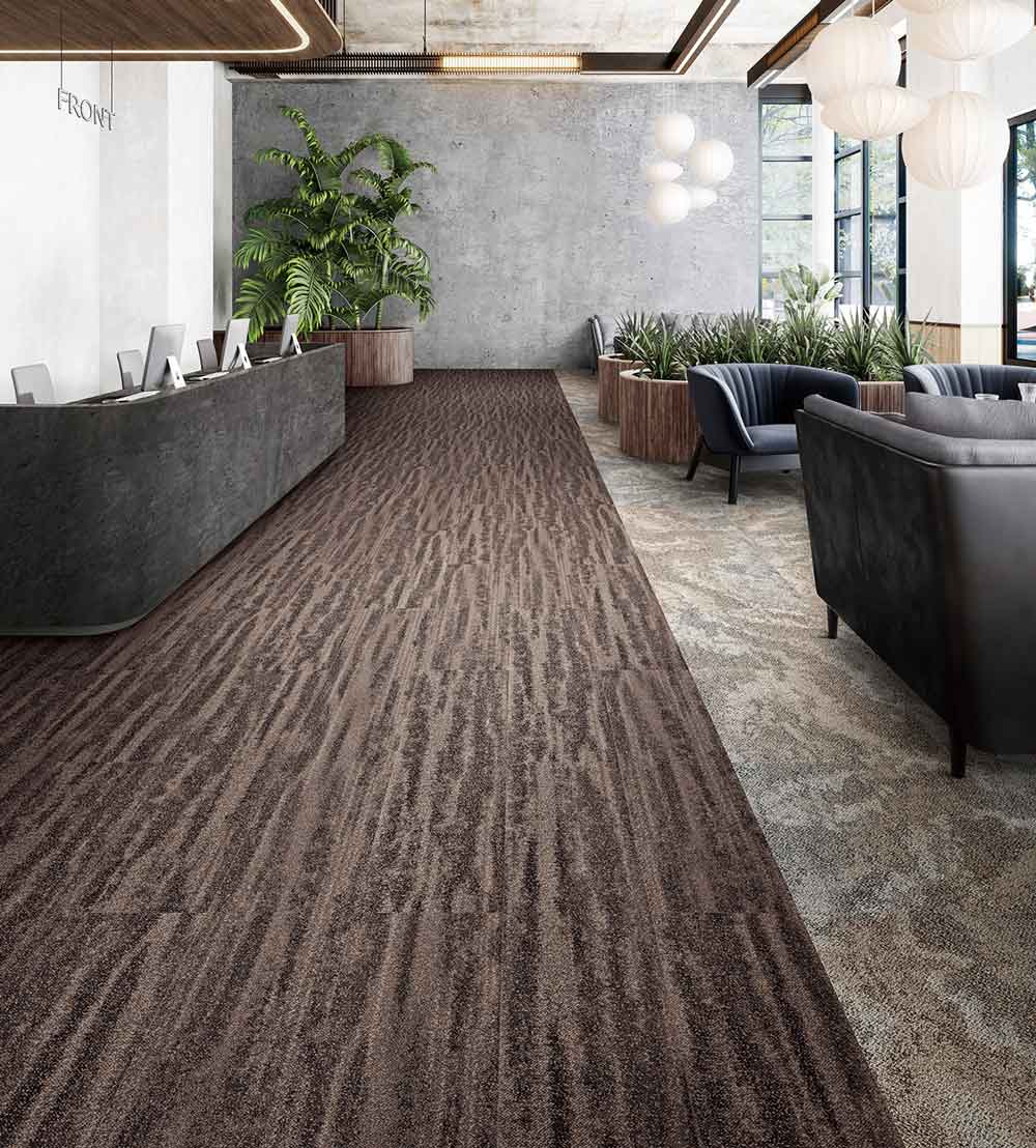 GXシリーズはデザイン性が高くホテルや旅館などの宿泊施設から各種商業施設、オフィスなどに人気のタイルカーペットです。 ほとんどが重歩行タイプ(※)、撥水防汚加工のため人や物の往来が多い場所、空港やショッピングモール、アミューズメント施設などにもご使用いただけます。 また環境配慮型商品となっていますので学校などの教育関連施設にもおすすめです。