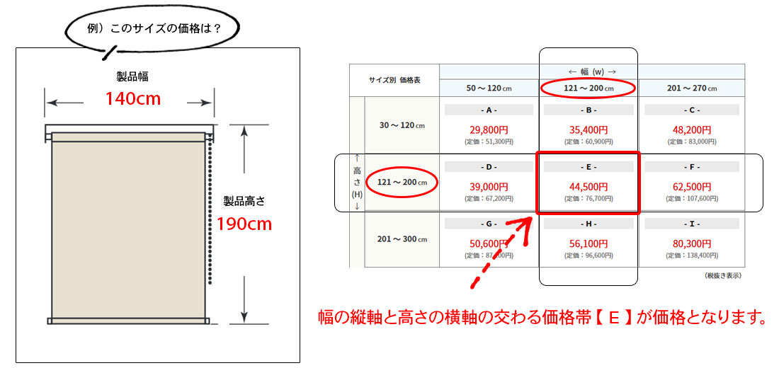 | サイズ別 価格表 | ← 幅 (w) → | ||||