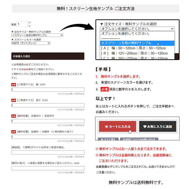 破損などの初期不良、製作違いに関しては対応させていただきます。 ※商品到着後1週間以内にメールまたはお電話にてご連絡ください。1週間以上経過した場合、対応いたしかねますので、早めに商品のご確認をお願いいたします。 ※ご連絡なしに返金、返品、交換はできません。 ※確認のためにメールなどでお写真を頂く場合がございます。 ※色や柄のイメージ違い、サイズ違い、注文間違いなどのお客様都合によるキャンセルや返金、返品、交換はお受けできません。 ※スクリーン生地の色合いを重視される場合は、必ず購入前に[ 無料生地サンプル ]を取り寄せ、ご確認いただくようお願いいたします。 |