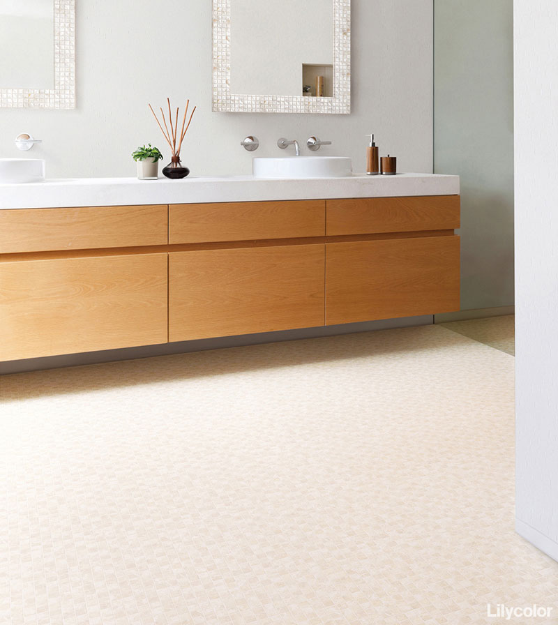 クリアな印象のモザイク柄は水廻りに清潔感を与えます