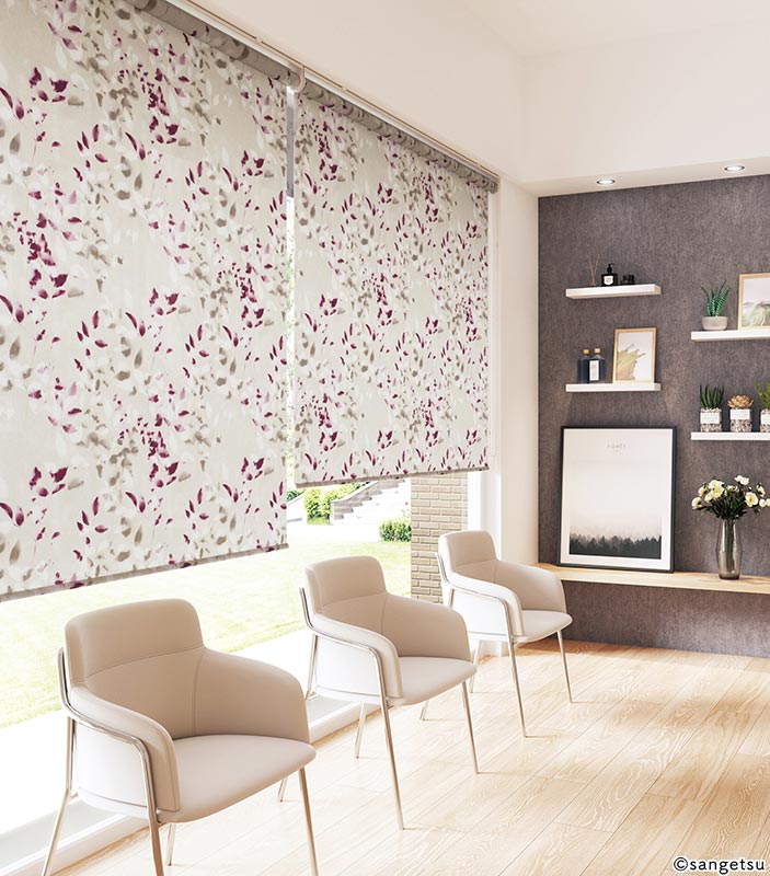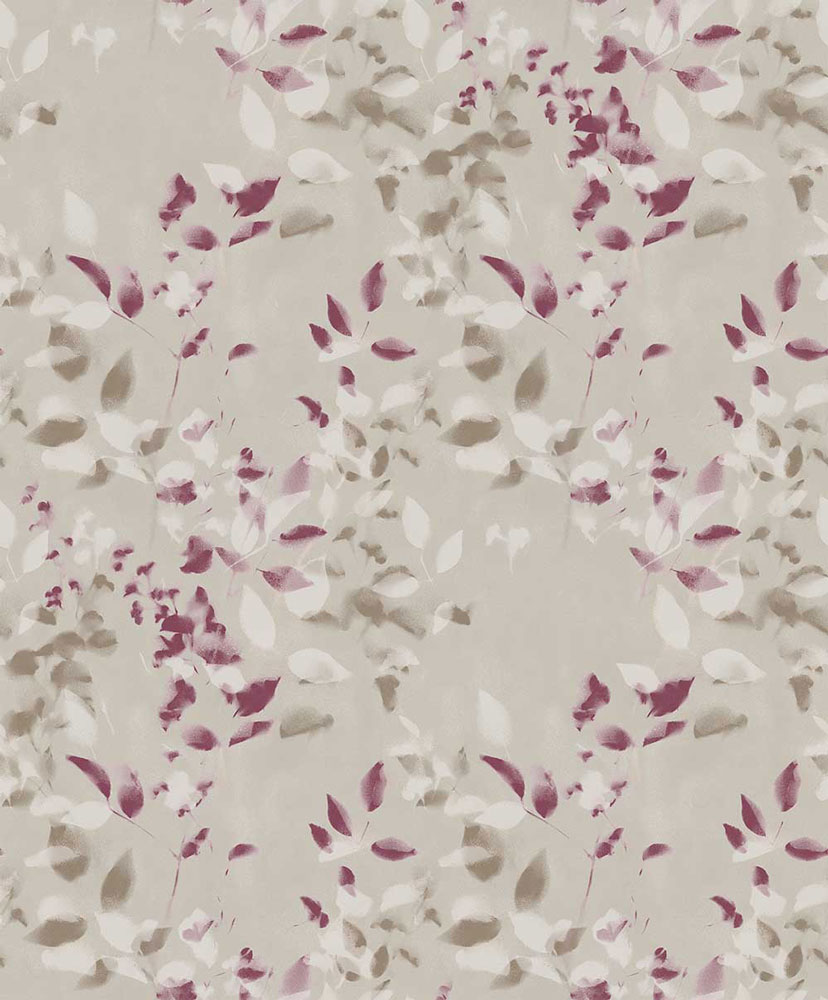 風にたなびく大柄のリーフ柄、水彩画の優しいタッチをプリントで表現しました。ナチュラルで心地良い空間を演出します。