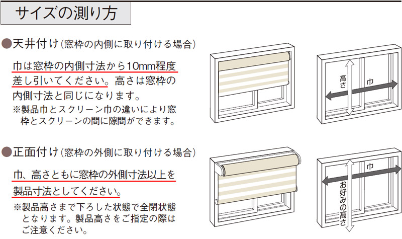 ・指定サイズはロールスクリーンの仕上がり寸法となります。