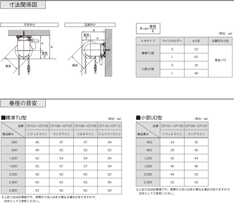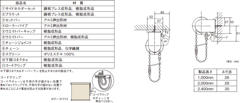本 体:チェーン式 標準TU型 機械色:ホワイト (標準) ※ブラウンに変更可 裾仕様:ラッピング (袋縫い) |