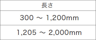 ・300 ~ 1,200mm ・1,205 ~ 2,000mm ※上記サイズ内でご指定ください。 |