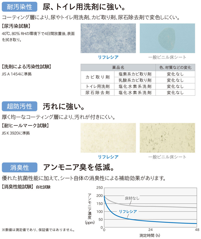 特長:耐汚染性 / 超防汚性 / 消臭性